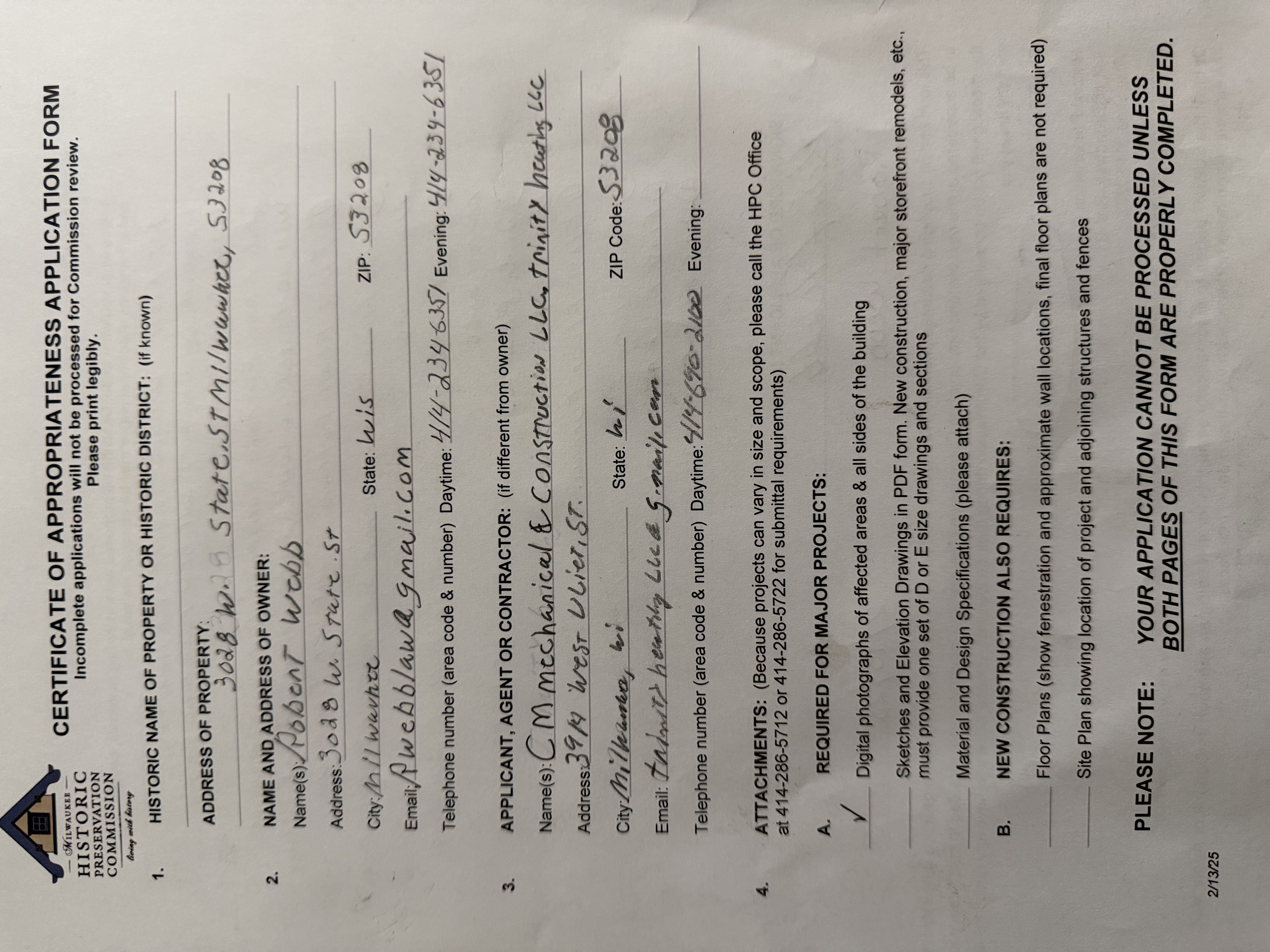 Resolution relating to a Certificate of Appropriateness for new HVAC equipment at 3028 W. State Street, in the Concordia Historic District, for Robert Webb.